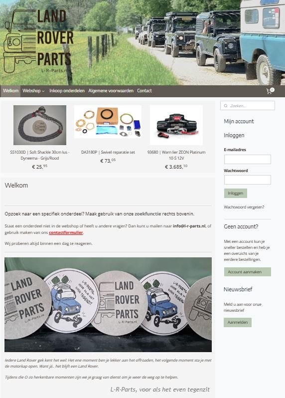 We wilden een webshop creëren met nog net zoveel sfeer, maar wel met nieuwe, frisse en overzichtelijke uitstraling. En eigenlijk nog belangrijker, welke makkelijk in gebruik zou worden! Daarom hebben we de webshop van de grond af opnieuw opgebouwd in samenwerking met Max van The Digital Duo (Max, bedankt!). De volledig vernieuwde L-R-Parts.nl is sneller, gebruiksvriendelijker en professioneler, maar met dezelfde passie voor Land Rovers en hun eigenaren als waarmee we in eerste instantie zijn begonnen.